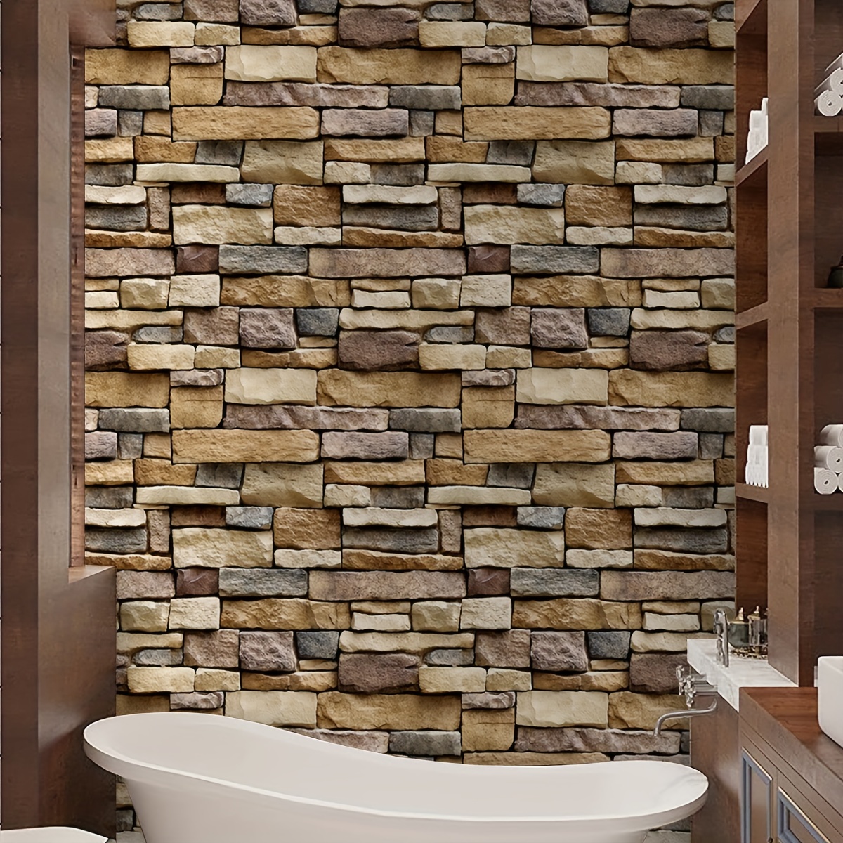 1 Pc Faux Vintage 3D Brique Pierre Papier Peint Auto-Adhésif Vinyle Peel Et Bâton Papier Peint Murale Pour Mur Salle de Bains Cuisine Dosseret Salon Chambre Amovible Et Étanche