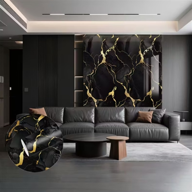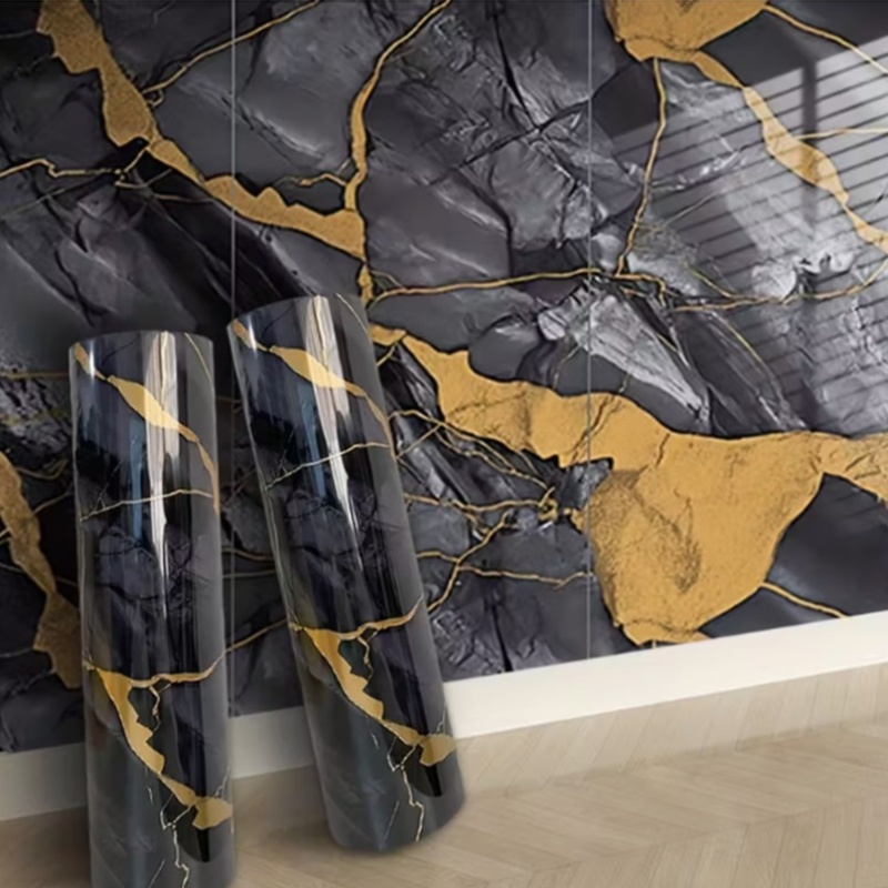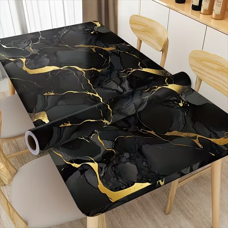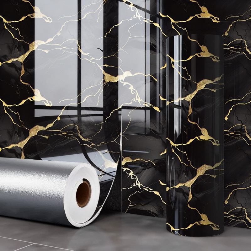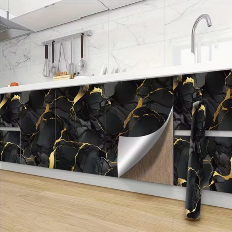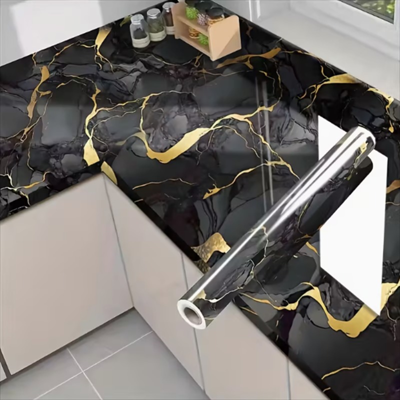 1 Rouleau de papier peint auto-adhésif motif marbre noir brillant | Matériau vinyle, convient pour la décoration de salle de bain et de cuisine, idéal pour les armoires, les tiroirs, les étagères, fin mat, usage unique