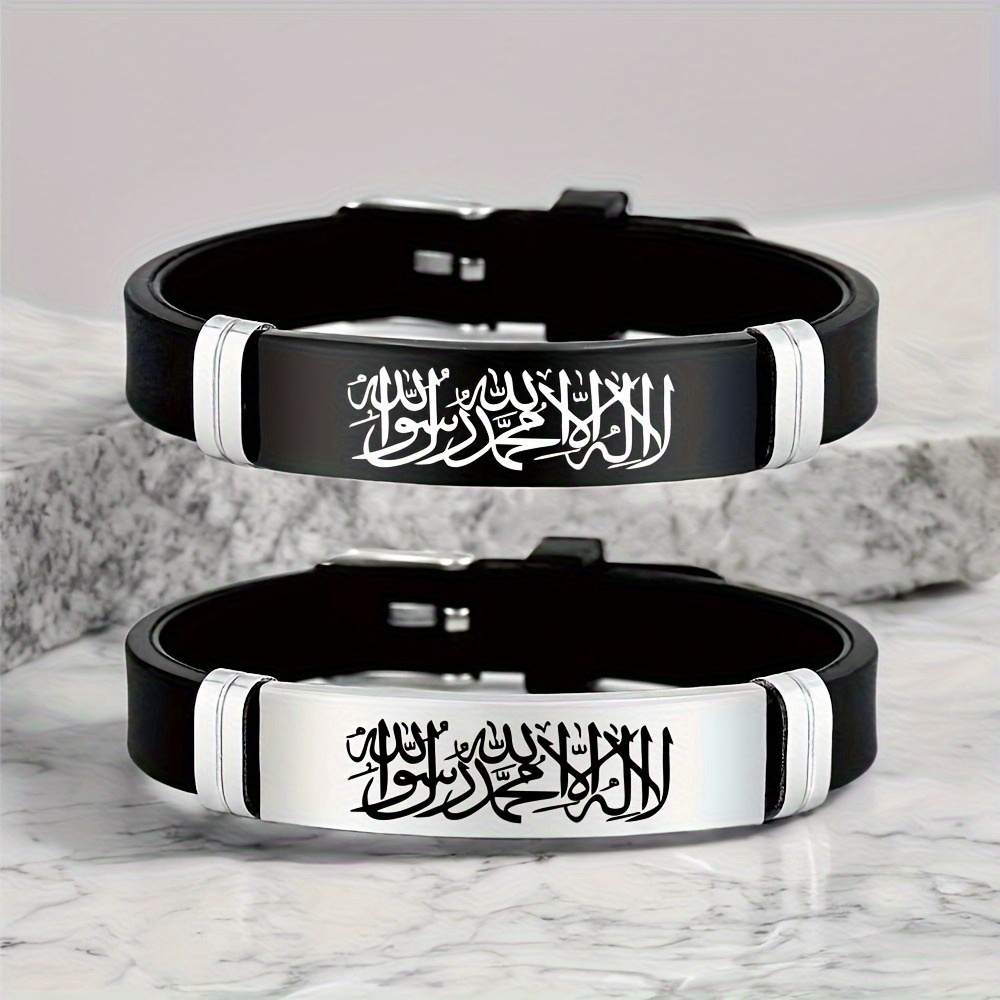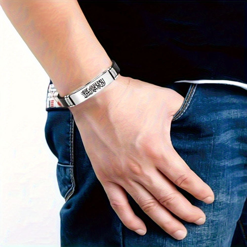 Bracelet en acier inoxydable 304 304 304 304 304 304 avec calligraphie islamique arabe – Gravé pour les bénédictions et la protection d’Allah, finition noire, cadeau religieux pour les hommes, adapté pour l’Aïd, le Ramadan et l’Action de grâce, accessoire de tous les jours et de vacances, design exquis, bijou durable, accessoire spirituel pour les hommes musulmans.