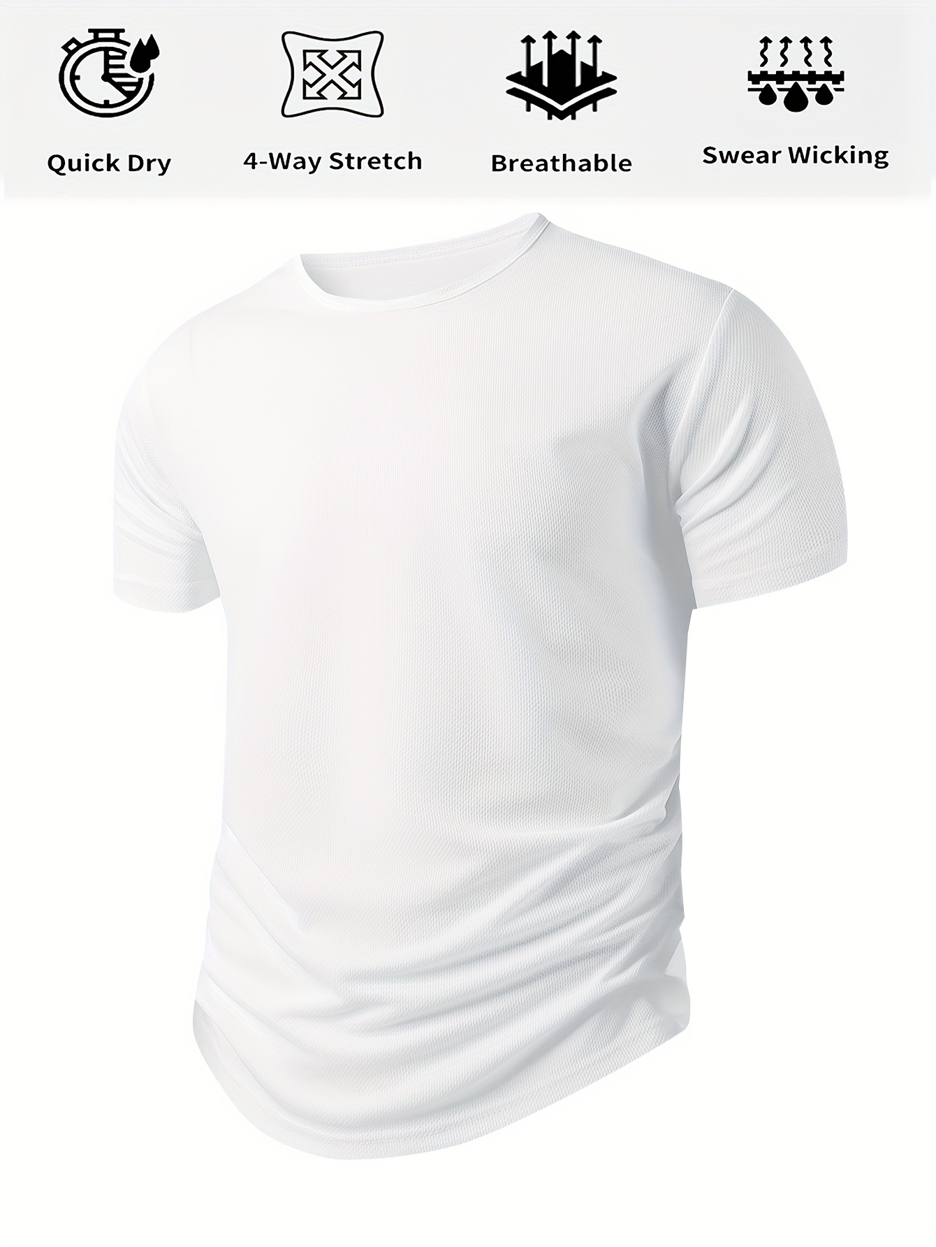 Chemise pour homme à séchage rapide, tissu 4-way étirable anti-transpiration, technologie anti-pueur, fit régulier, manches courtes, col rond pour gym, sports extérieurs et usages casual, lavable en machine