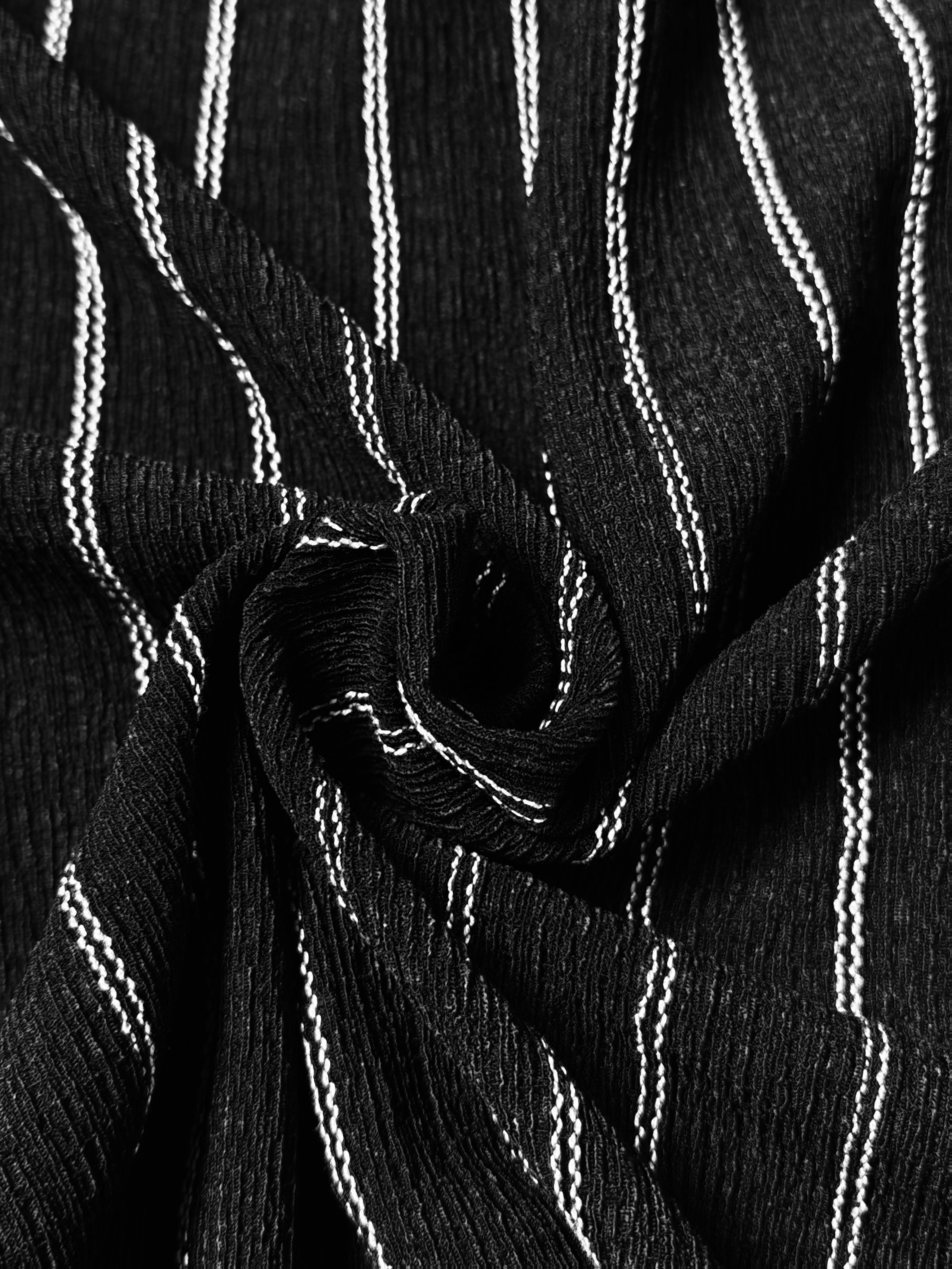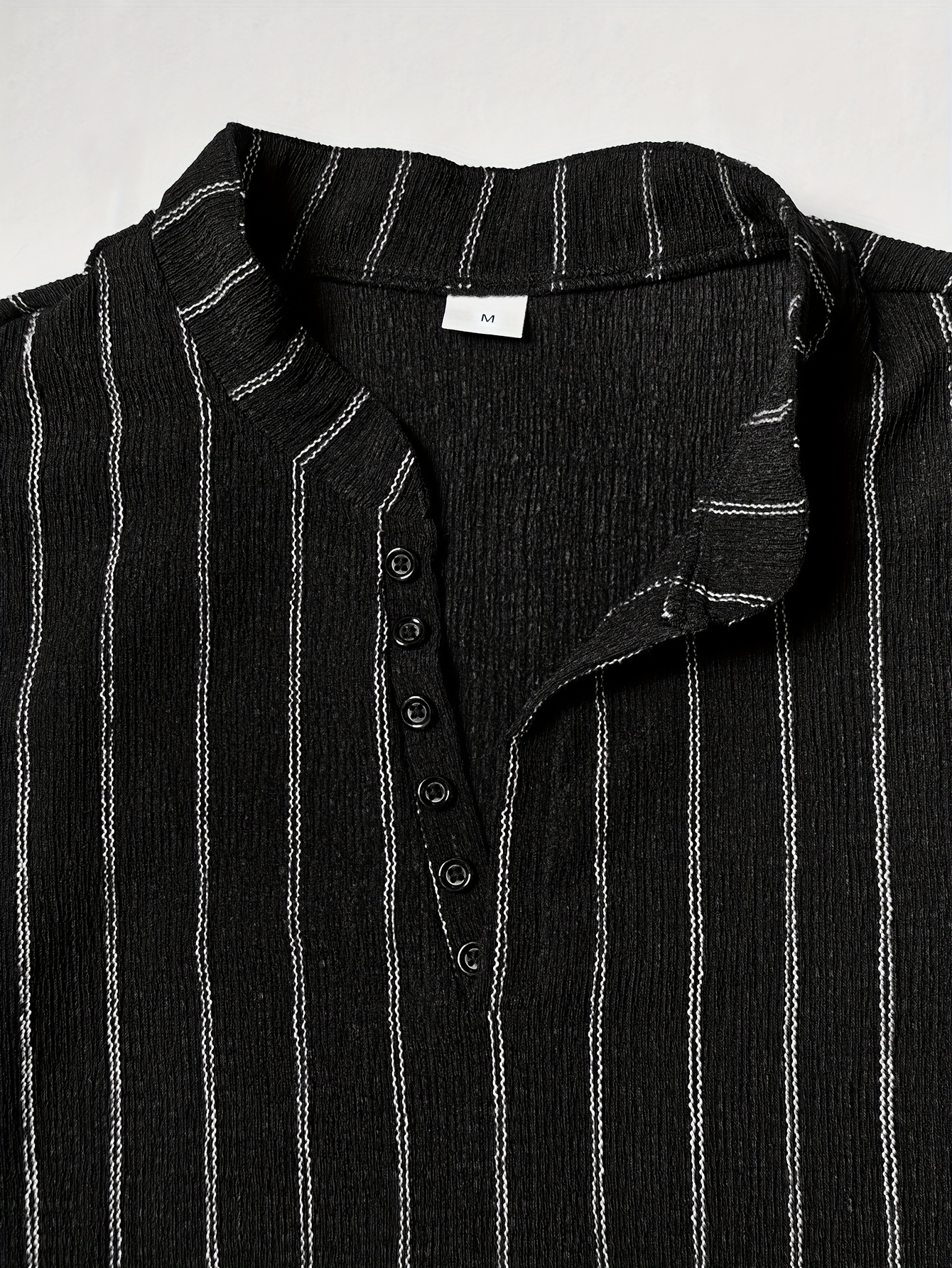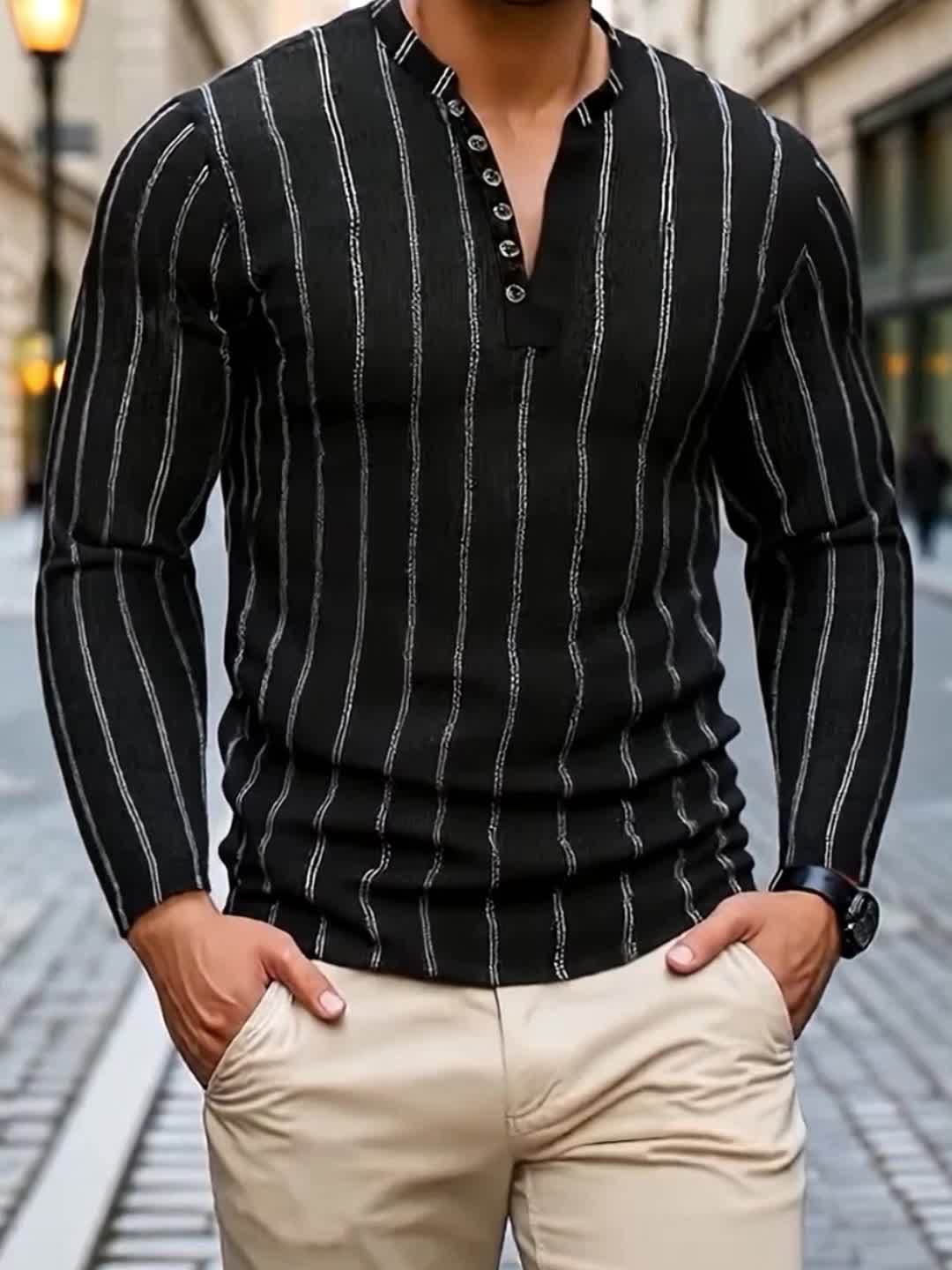 Chemise rayée à manches longues pour hommes – Rayures verticales noires et blanches, col Henley boutonné, en tricot à élasticité moyenne, parfaite pour les tenues décontractées d’automne et d’hiver