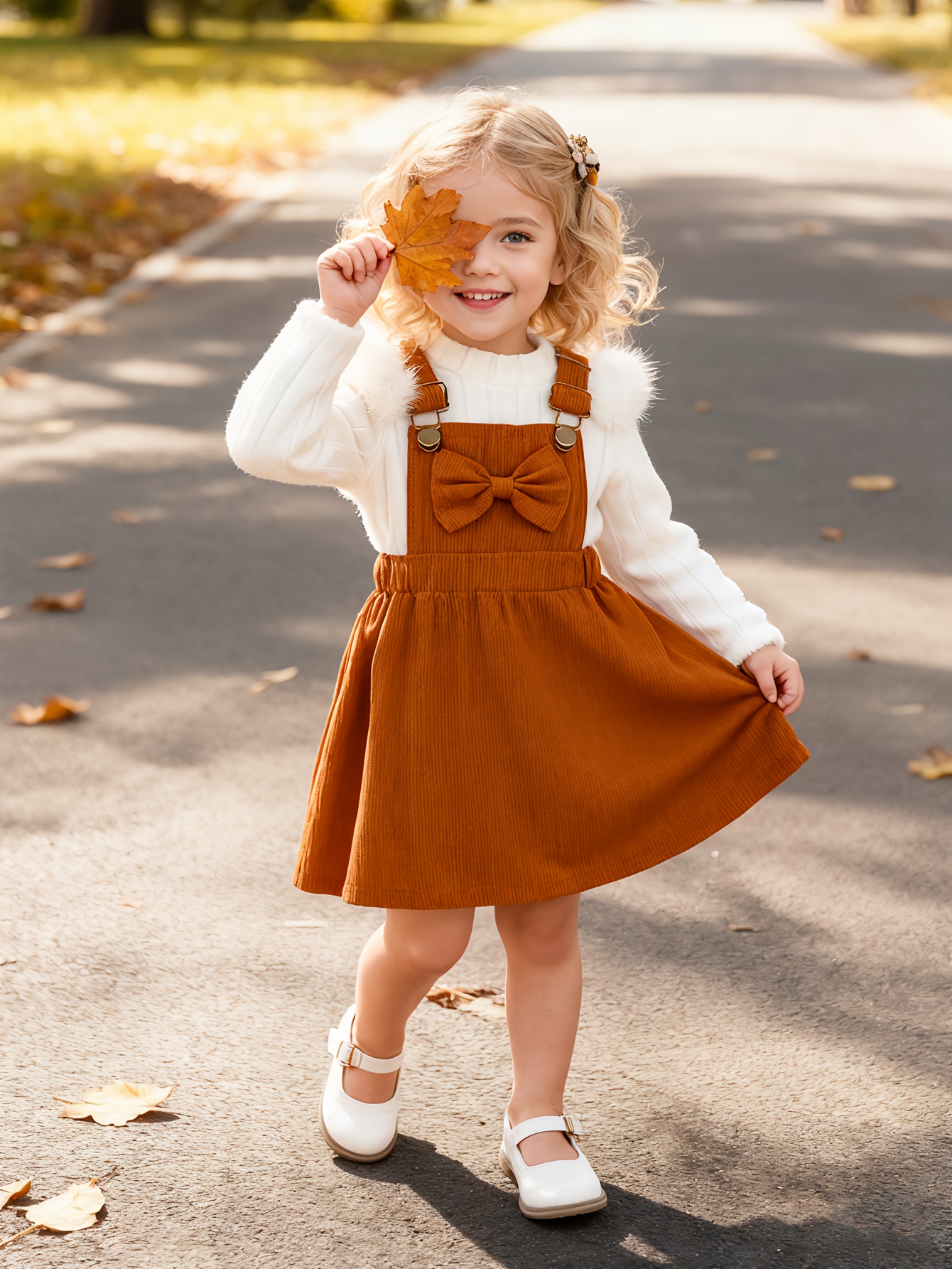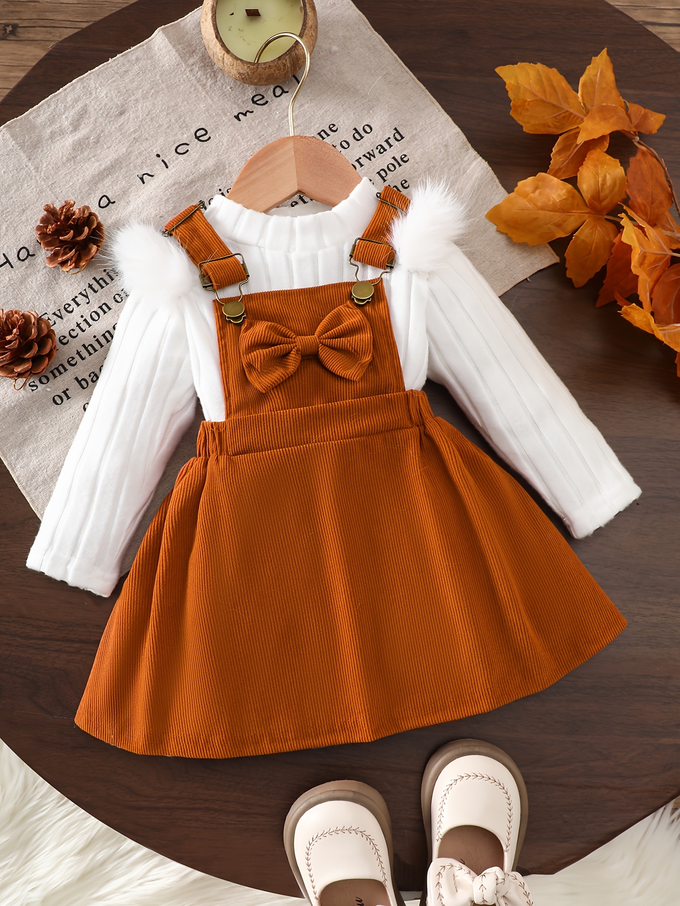 Ensemble de deux robes côtelées à manches papillon en polaire pour bébés filles, indispensables pour les activités de plein air en automne et en hiver, avec de charmantes bretelles papillon, ce qui en fait un choix de cadeau parfait.