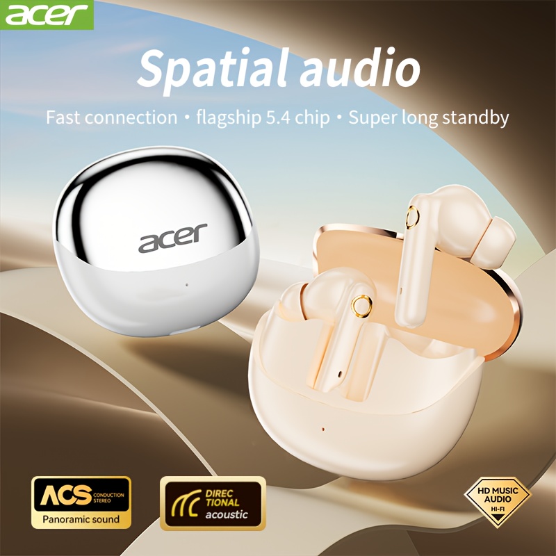 Les nouveaux écouteurs sans fil TWS Acer modèle 2025, parfaits pour la rentrée scolaire, offrent un son stéréo avec des basses profondes, une suppression du bruit des appels, une longue autonomie de la batterie, un design intra-auriculaire pour le sport et la course, un mode gaming à faible latence et un audio HIFI Dolby.