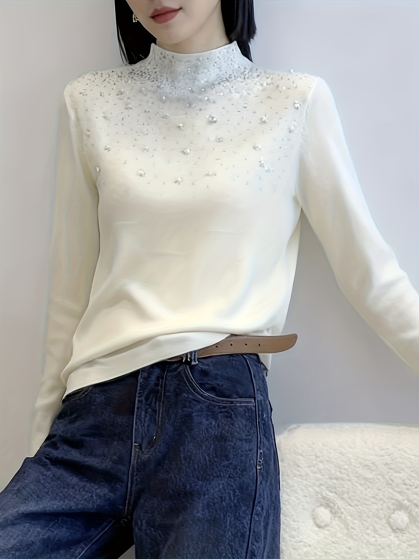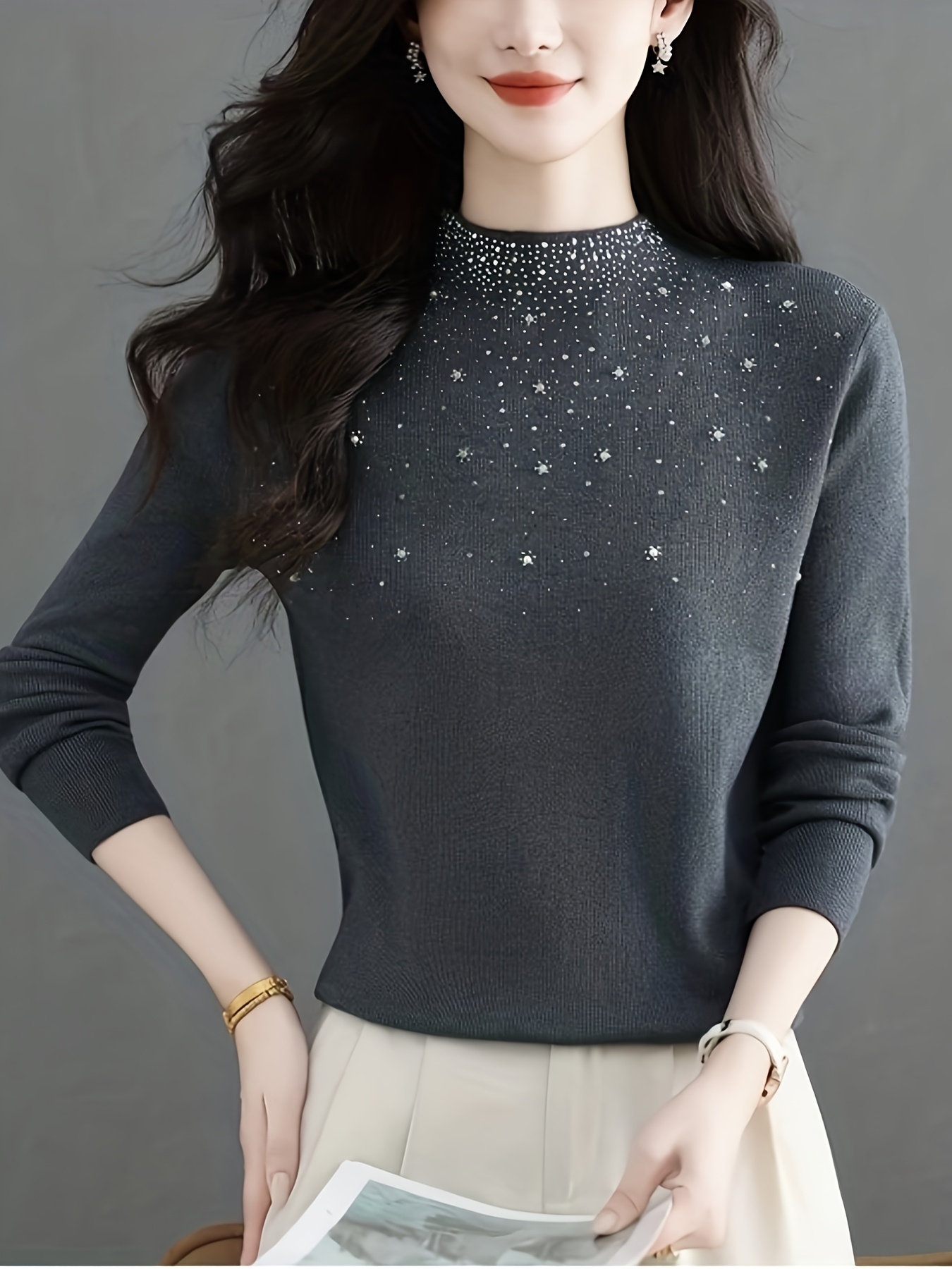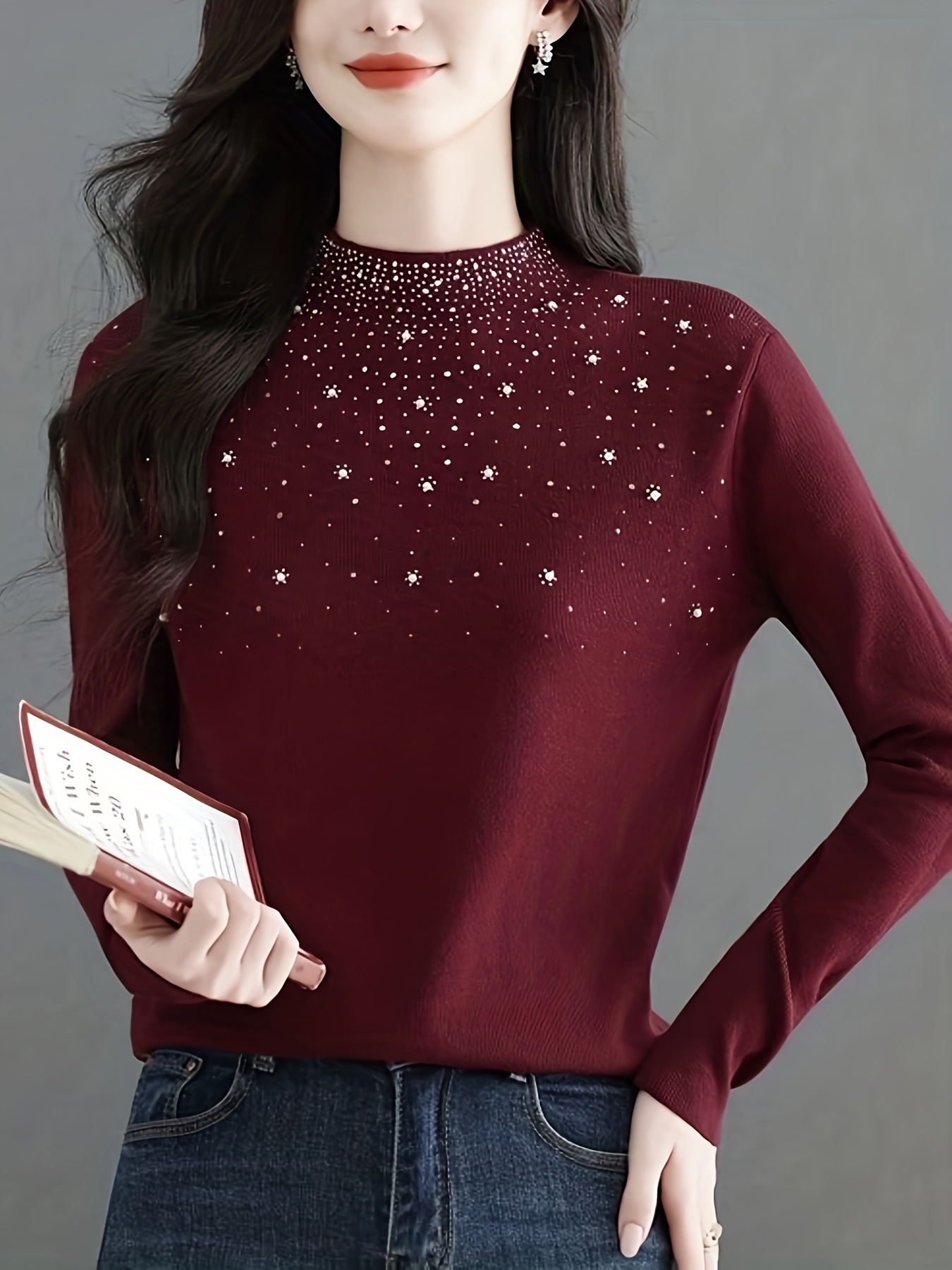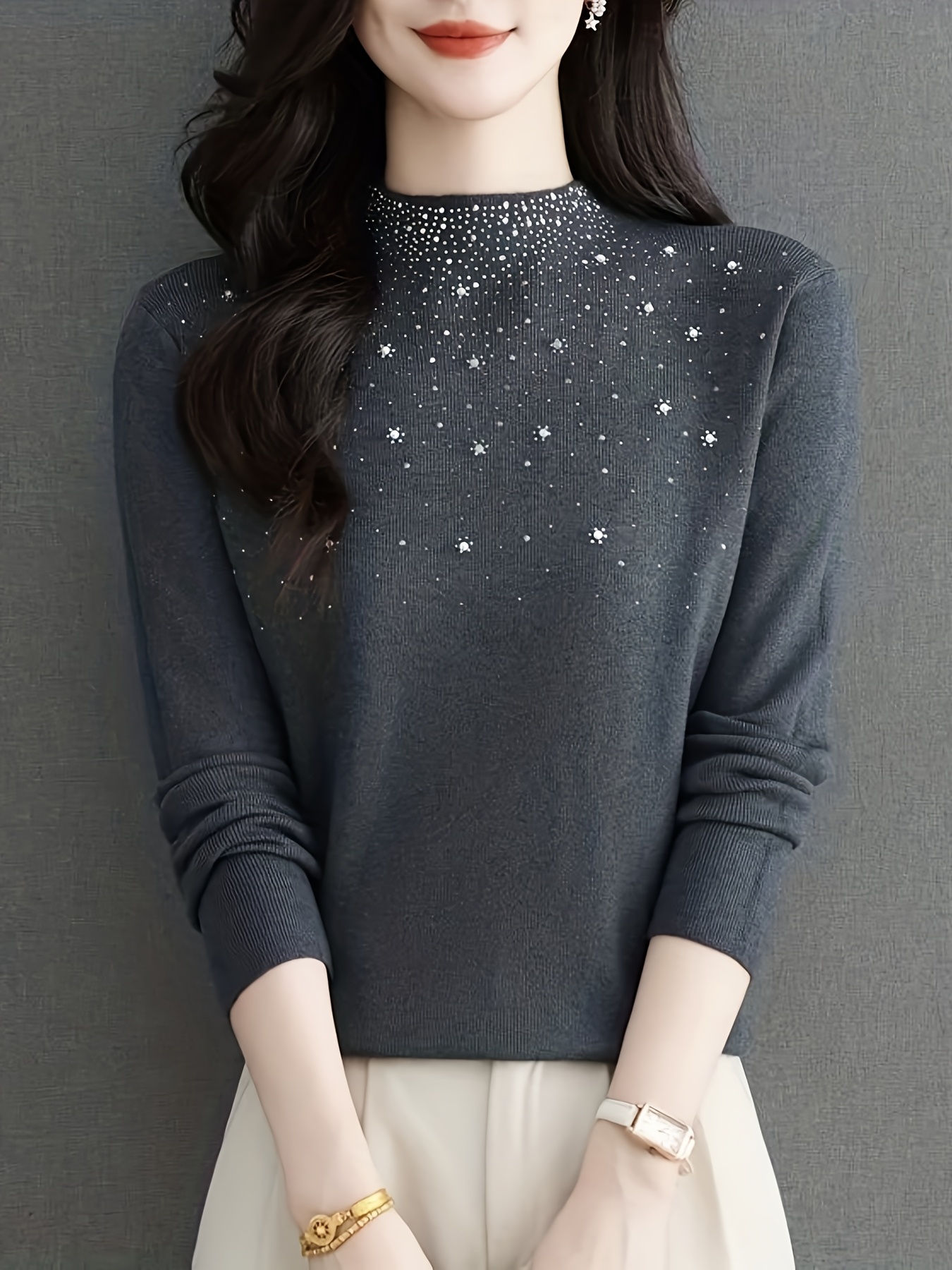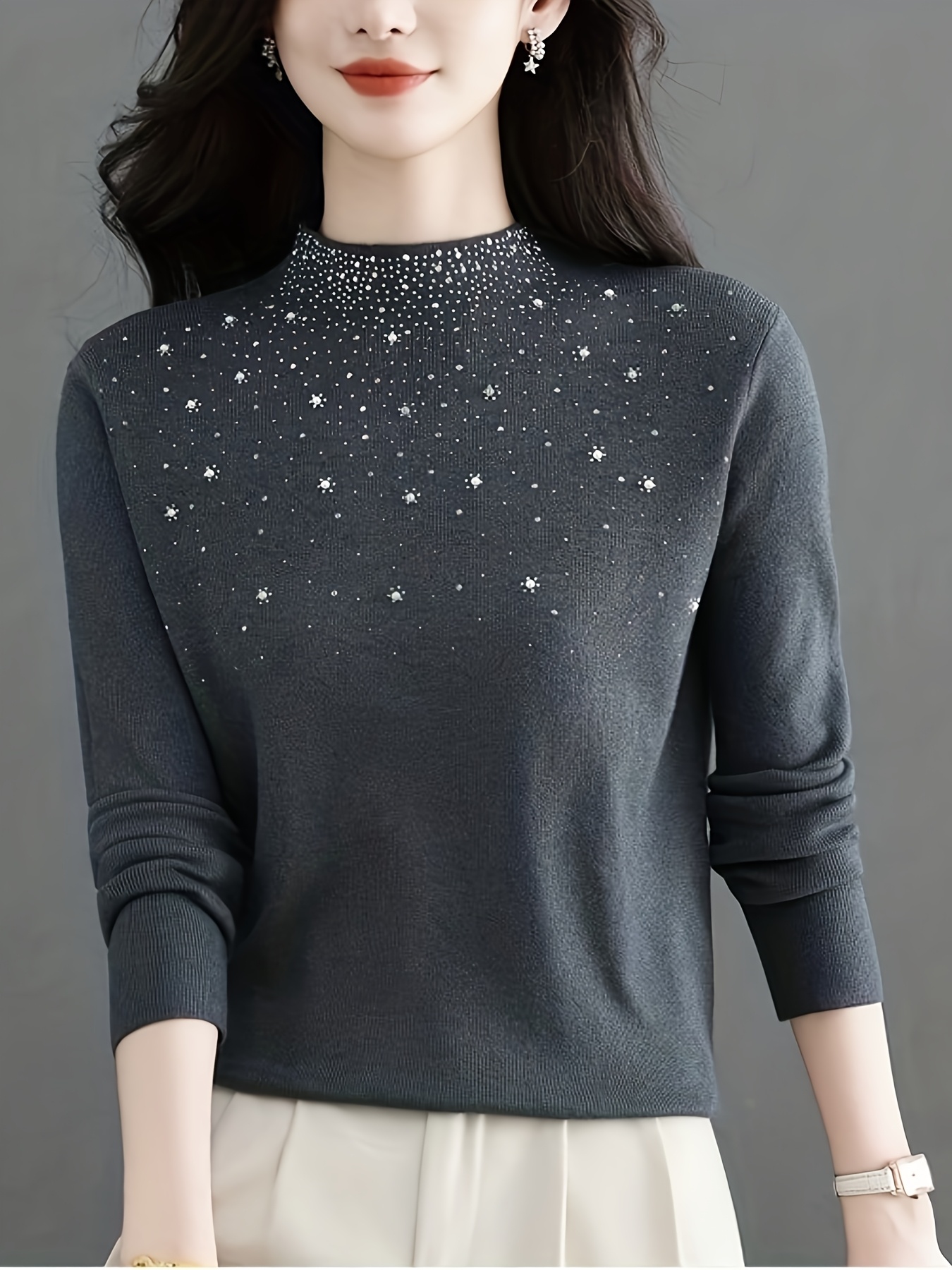 Pull élégant pour femmes à col mi-hauteur – Pull d’hiver à manches longues avec un doux éclat, pull chic de couleur unie pour tenues de tous les jours et formelles, tissu doux et chaud pour superposition automne/hiver, pulls pour femmes