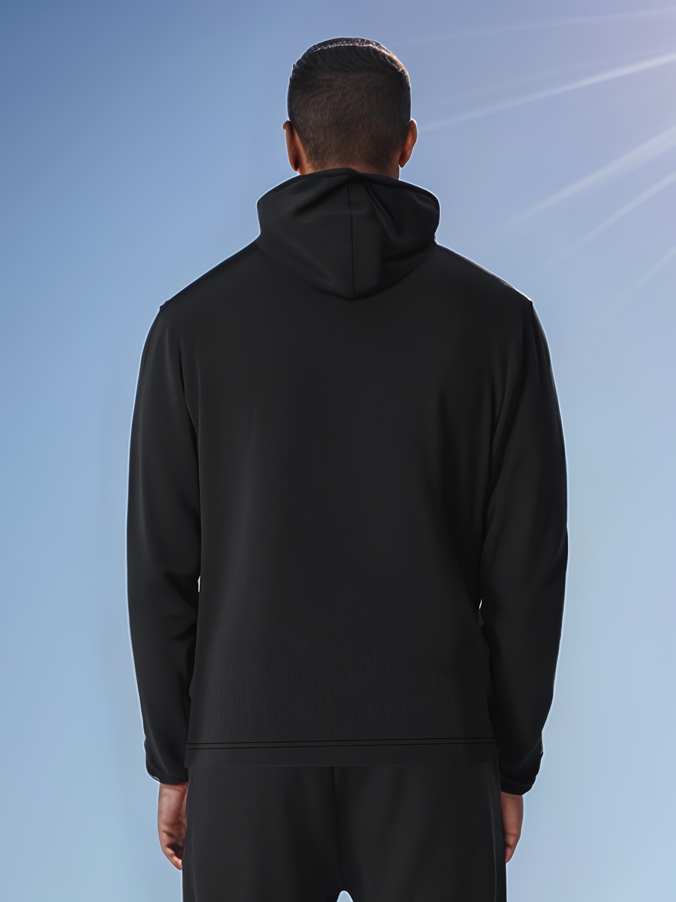Veste à capuche légère et séchage rapide pour homme – Fermeture éclair ajustée avec poches latérales, manteau de sport décontracté et respirant pour l’extérieur, printemps/automne, noir, vêtements d’extérieur pour le printemps, design minimaliste, tissu durable