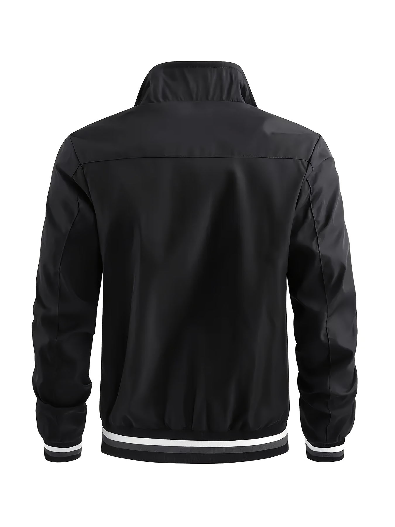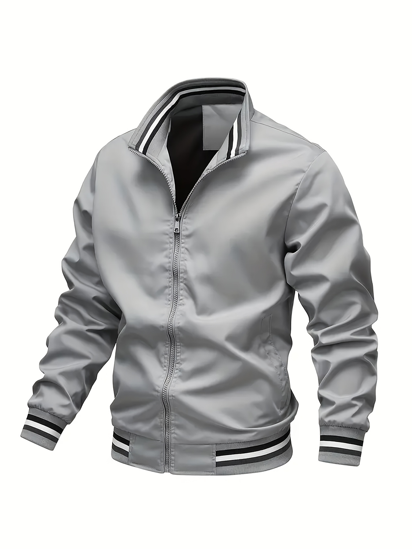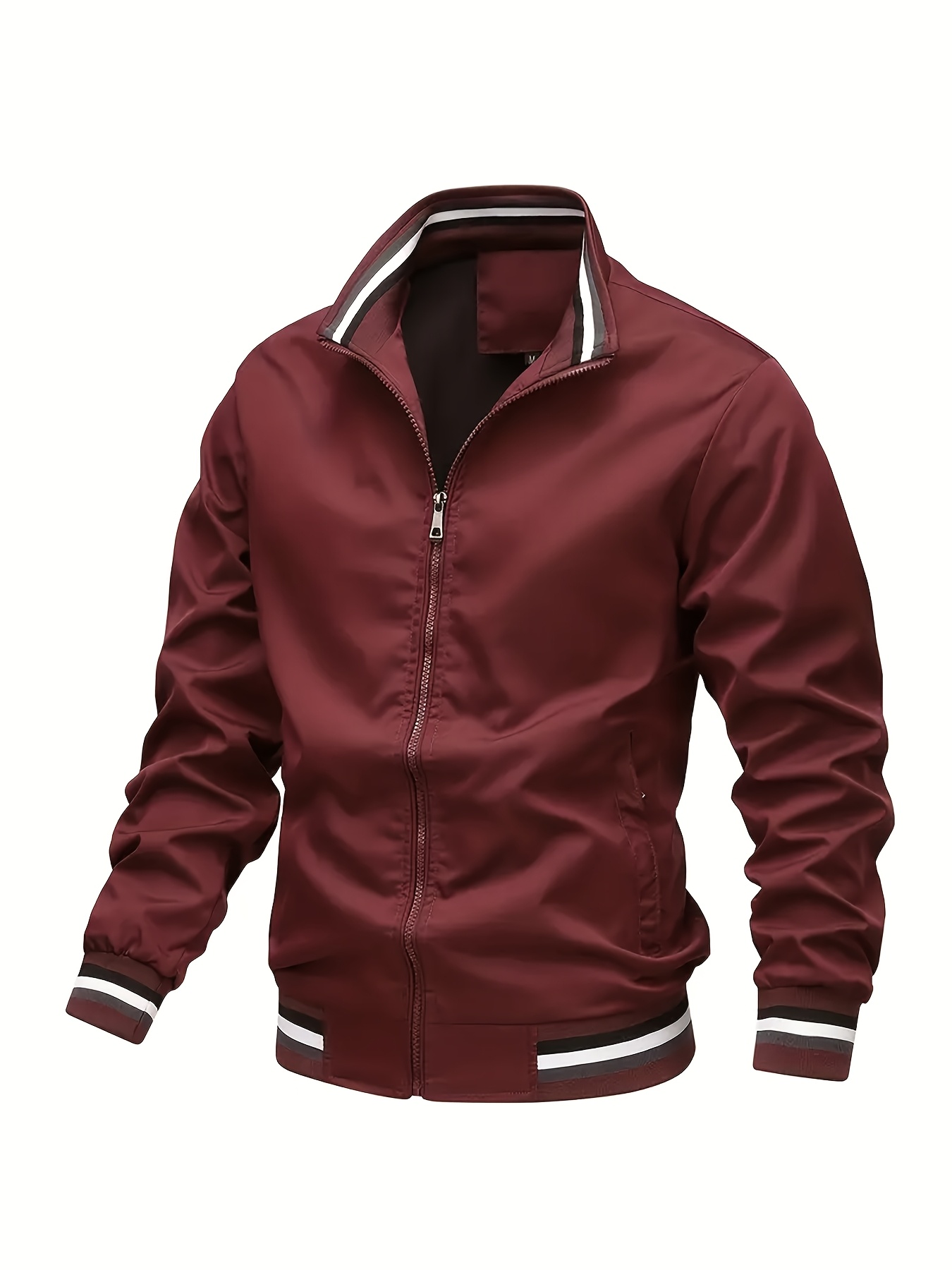 Veste Décontractée pour Homme avec Rayures Contrastées et Col Montant – Vêtement Extérieur Léger pour Printemps/Automne, Poches Zippées pour Activités en Plein Air & Port Quotidien, Veste Décontractée d’Extérieur | Veste Élégante pour Hommes | Détails de Rayures Durables