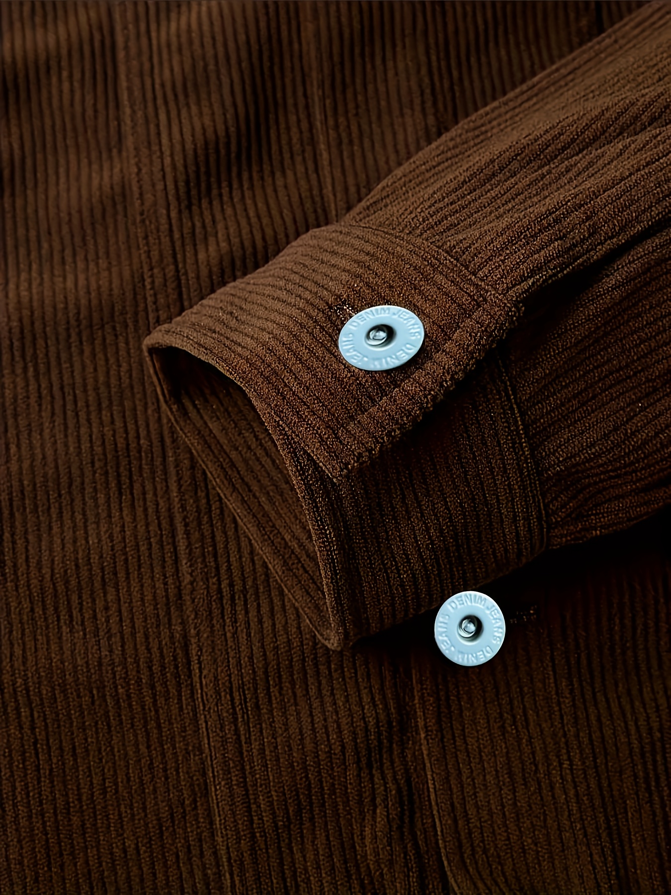 Veste en velours côtelé pour homme avec col et poche poitrine – Manteau boutonné doux pour hiver, printemps, automne – Décontracté pour extérieur et port quotidien (fêtes incluses) – Manteau en velours côtelé marron pour homme (lavable en machine)