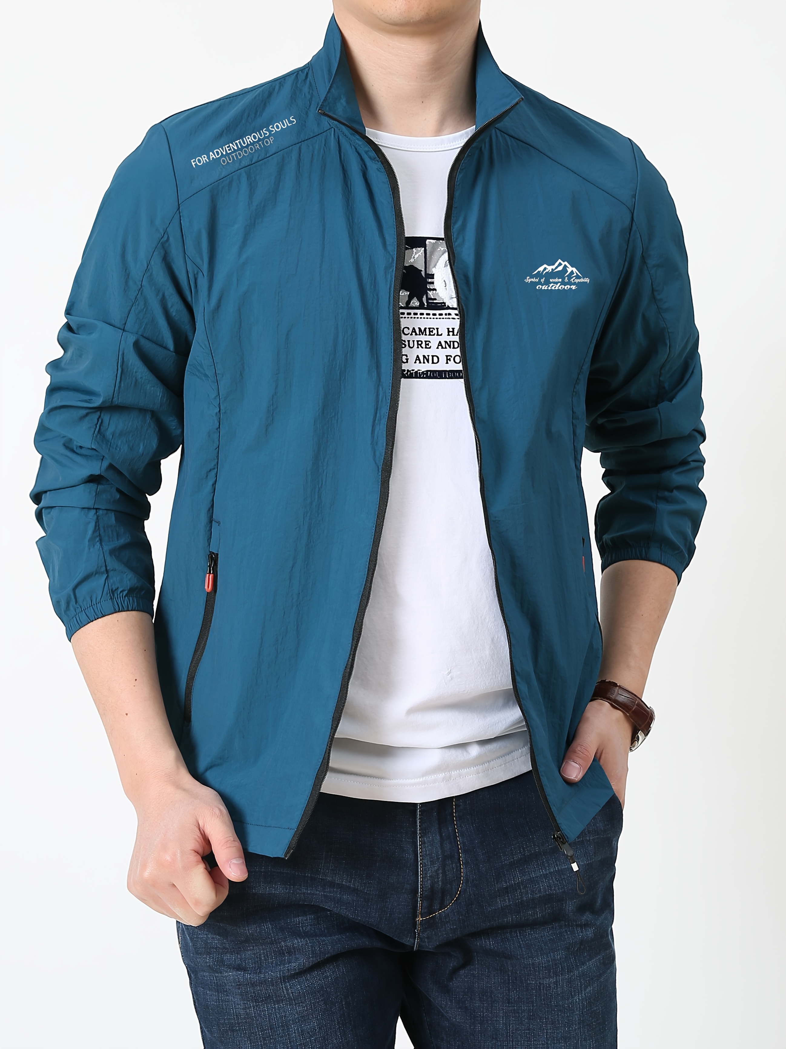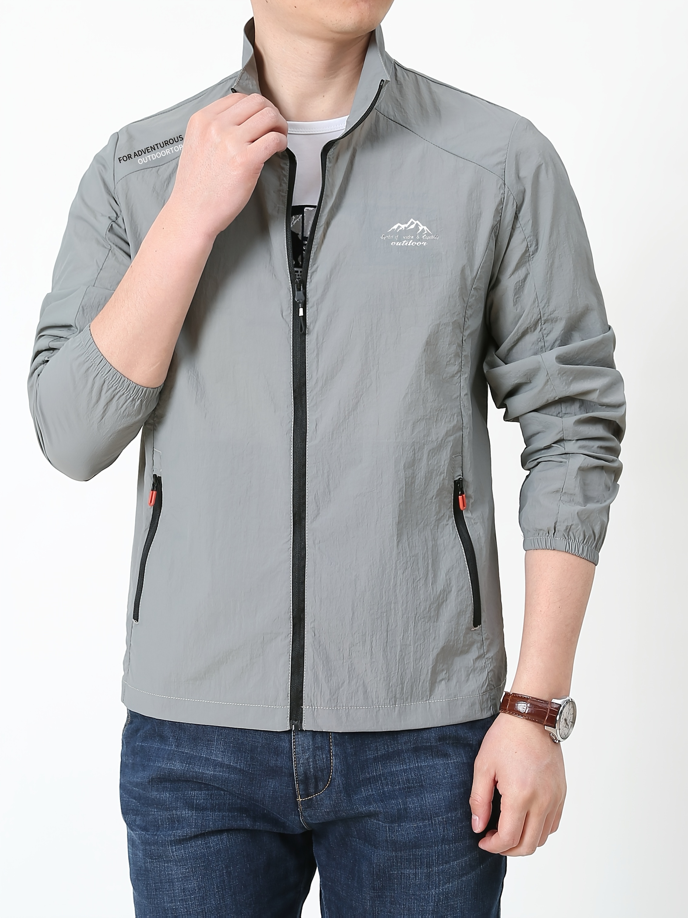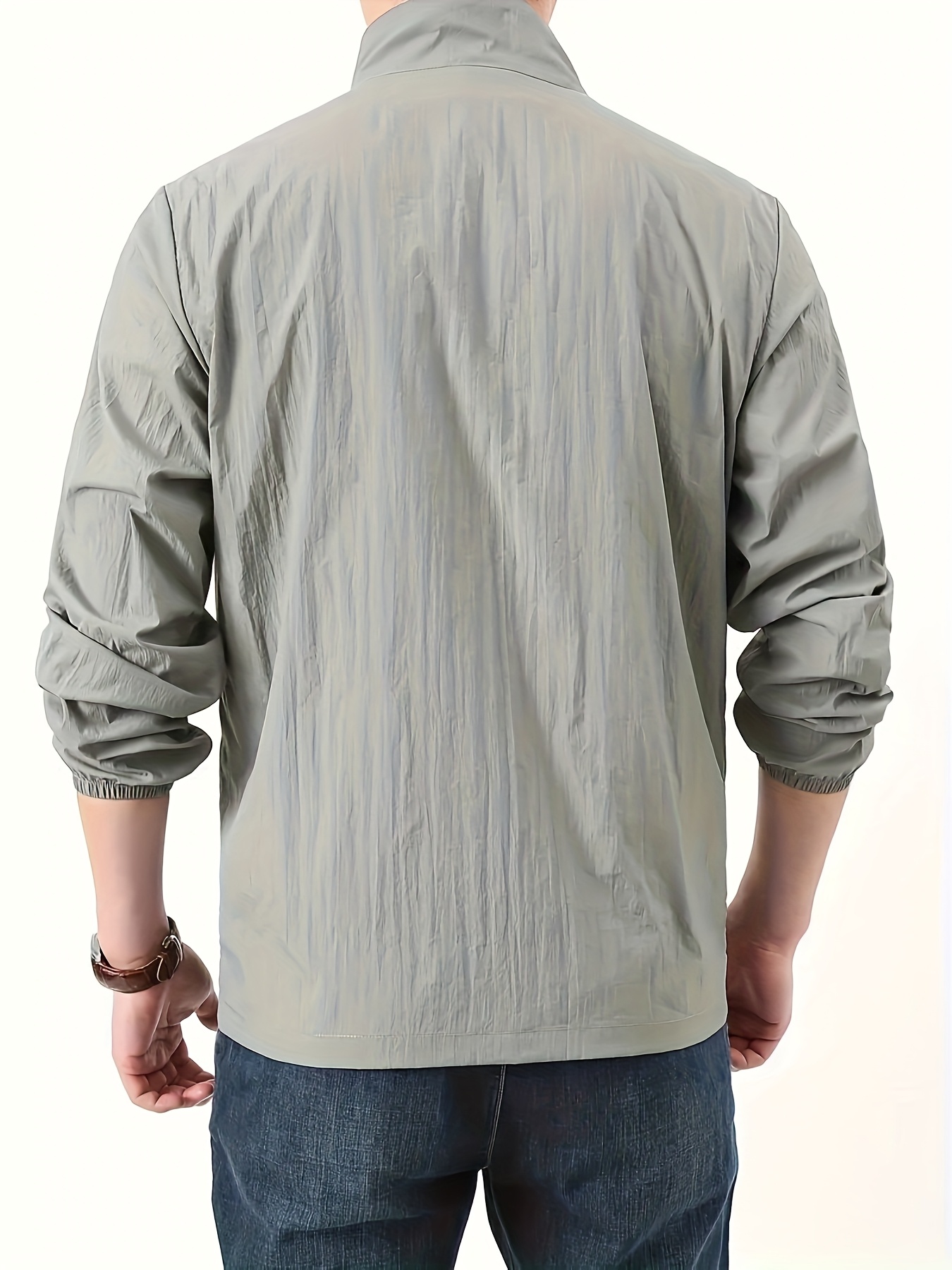 Veste légère et respirante à col montant pour hommes – Manteau de sport d’extérieur ultra-fin en nylon pour l’été, couleur unie avec poches, lavable en machine, convient pour une tenue décontractée, la randonnée et l’équipement de course.